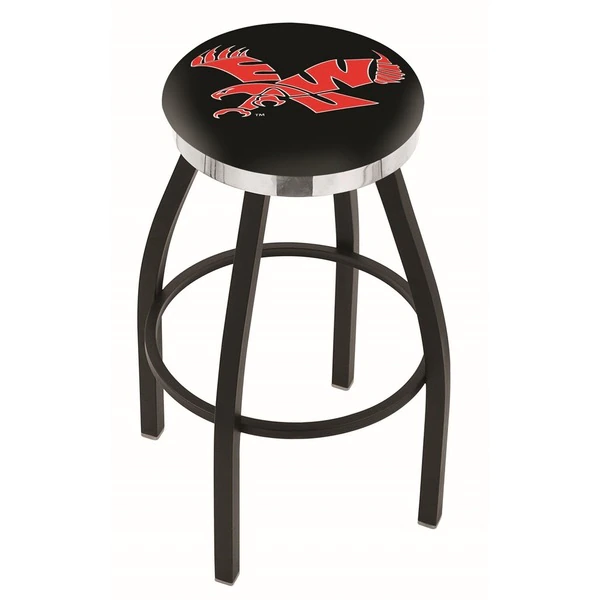 Made for the ultimate sports fan, you will be proud to show where your loyalty lies with this impressive Officially Licensed stool from the Holland Bar Stool Co. This contemporary L8B2C stool has a single-ring black wrinkle base with a 2 1/2" thick cushion sitting on top of a 2" chrome ring that conceals the swivel for an exceptionally clean look. A state of the art print process is used in applying specially formulated UV vinyl ink in numerous stages to produce a sharp, crisp, clear image to ensure a perfect reproduction of the logo. You won't find a higher quality logo stool on the market. The frame is made from commercial quality 16 gauge, 1 1/4 inch tube steel with solid mig welded joints to guarantee strength and durability. The powder coated finish resists chips and scratches and ensures a long-lasting, rich appearance. The cushion seats are of the highest quality as well, utilizing a breathable, commercial grade vinyl. At the heart of the cushion is highly-dense foam that provides maximum support and will not breakdown in a couple years. If you're going to finish your bar, game room, or man cave do it right- with a logo stool made by the Holland Bar Stool Co.