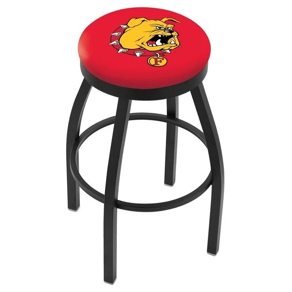 Made for the ultimate sports fan, you will be proud to show where your loyalty lies with this impressive Officially Licensed stool from the Holland Bar Stool Co. This contemporary L8B2B stool has a single-ring black wrinkle base with a 2 1/2" thick cushion sitting on top of a 2" black wrinkle ring that conceals the swivel for an exceptionally clean look. A state of the art print process is used in applying specially formulated UV vinyl ink in numerous stages to produce a sharp, crisp, clear image to ensure a perfect reproduction of the logo. You won't find a higher quality logo stool on the market. The frame is made from commercial quality 16 gauge, 1 1/4 inch tube steel with solid mig welded joints to guarantee strength and durability. The powder coated finish resists chips and scratches and ensures a long-lasting, rich appearance. The cushion seats are of the highest quality as well, utilizing a breathable, commercial grade vinyl. At the heart of the cushion is highly-dense foam that provides maximum support and will not breakdown in a couple years. If you're going to finish your bar, game room, or man cave do it right- with a logo stool made by the Holland Bar Stool Co.