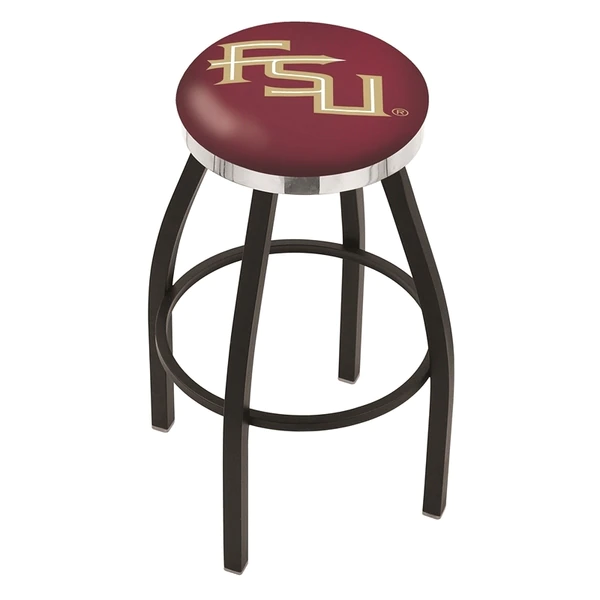Made for the ultimate sports fan, you will be proud to show where your loyalty lies with this impressive Officially Licensed stool from the Holland Bar Stool Co. This contemporary L8B2C stool has a single-ring black wrinkle base with a 2 1/2" thick cushion sitting on top of a 2" chrome ring that conceals the swivel for an exceptionally clean look. A state of the art print process is used in applying specially formulated UV vinyl ink in numerous stages to produce a sharp, crisp, clear image to ensure a perfect reproduction of the logo. You won't find a higher quality logo stool on the market. The frame is made from commercial quality 16 gauge, 1 1/4 inch tube steel with solid mig welded joints to guarantee strength and durability. The powder coated finish resists chips and scratches and ensures a long-lasting, rich appearance. The cushion seats are of the highest quality as well, utilizing a breathable, commercial grade vinyl. At the heart of the cushion is highly-dense foam that provides maximum support and will not breakdown in a couple years. If you're going to finish your bar, game room, or man cave do it right- with a logo stool made by the Holland Bar Stool Co.
