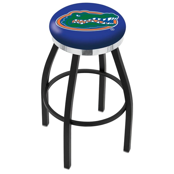 Made for the ultimate sports fan, you will be proud to show where your loyalty lies with this impressive Officially Licensed stool from the Holland Bar Stool Co. This contemporary L8B2C stool has a single-ring black wrinkle base with a 2 1/2" thick cushion sitting on top of a 2" chrome ring that conceals the swivel for an exceptionally clean look. A state of the art print process is used in applying specially formulated UV vinyl ink in numerous stages to produce a sharp, crisp, clear image to ensure a perfect reproduction of the logo. You won't find a higher quality logo stool on the market. The frame is made from commercial quality 16 gauge, 1 1/4 inch tube steel with solid mig welded joints to guarantee strength and durability. The powder coated finish resists chips and scratches and ensures a long-lasting, rich appearance. The cushion seats are of the highest quality as well, utilizing a breathable, commercial grade vinyl. At the heart of the cushion is highly-dense foam that provides maximum support and will not breakdown in a couple years. If you're going to finish your bar, game room, or man cave do it right- with a logo stool made by the Holland Bar Stool Co.