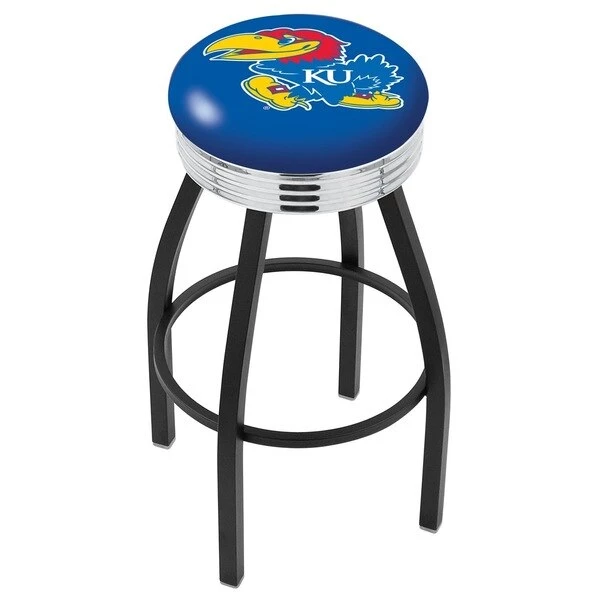 Made for the ultimate sports fan, you will be proud to show where your loyalty lies with this impressive Officially Licensed stool from the Holland Bar Stool Co. This classic L8B3C swivel stool features a single-ring black wrinkle base with a 2 1/2" thick cushion sitting on top of a 2.75" chrome ribbed ring that conceals the swivel for an exceptionally clean look. A state of the art print process is used in applying specially formulated UV vinyl ink in numerous stages to produce a sharp, crisp, clear image to ensure a perfect reproduction of the logo. You won't find a higher quality logo stool on the market. The frame is made from commercial quality 16 gauge, 1 1/4 inch tube steel with solid mig welded joints to guarantee strength and durability. The powder coated finish resists chips and scratches and ensures a long-lasting, rich appearance. The cushion seats are of the highest quality as well, utilizing a breathable, commercial grade vinyl. At the heart of the cushion is highly-dense foam that provides maximum support and will not breakdown in a couple years. If you're going to finish your bar, game room, or man cave do it right- with a logo stool made by the Holland Bar Stool Co.