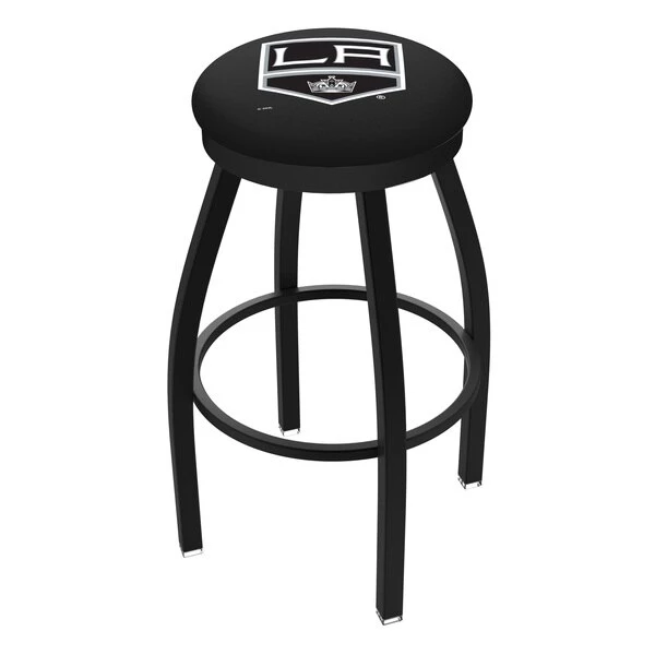 Made for the ultimate sports fan, you will be proud to show where your loyalty lies with this impressive Officially Licensed stool from the Holland Bar Stool Co. This contemporary L8B2B stool has a single-ring black wrinkle base with a 2 1/2" thick cushion sitting on top of a 2" black wrinkle ring that conceals the swivel for an exceptionally clean look. A state of the art print process is used in applying specially formulated UV vinyl ink in numerous stages to produce a sharp, crisp, clear image to ensure a perfect reproduction of the logo. You won't find a higher quality logo stool on the market. The frame is made from commercial quality 16 gauge, 1 1/4 inch tube steel with solid mig welded joints to guarantee strength and durability. The powder coated finish resists chips and scratches and ensures a long-lasting, rich appearance. The cushion seats are of the highest quality as well, utilizing a breathable, commercial grade vinyl. At the heart of the cushion is highly-dense foam that provides maximum support and will not breakdown in a couple years. If you're going to finish your bar, game room, or man cave do it right- with a logo stool made by the Holland Bar Stool Co.