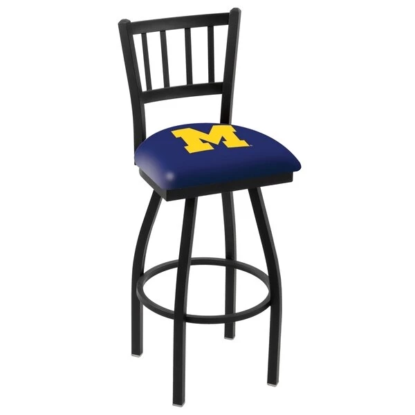 Made for the ultimate sports fan, you will be proud to show where your loyalty lies with this impressive Officially Licensed stool from the Holland Bar Stool Co. This contemporary L018 swivel logo stool has a defined Jailhouse back style that doesn't just add comfort, but sophistication. A state of the art print process is used in applying specially formulated UV vinyl ink in numerous stages to produce a sharp, crisp, clear image to ensure a perfect reproduction of the logo. You won't find a higher quality logo stool on the market. The frame is made from commercial quality 16 gauge, 1 1/4 inch tube steel with solid mig welded joints to guarantee strength and durability. The powder coated finish resists chips and scratches and ensures a long-lasting, rich appearance. The cushion seats are of the highest quality as well, utilizing a breathable, commercial grade vinyl. At the heart of the cushion is 2 1/2 inches of highly-dense foam that provides maximum support and will not breakdown in a couple years. If you're going to finish your bar, game room, or man cave do it right- with a logo stool made by the Holland Bar Stool Co.