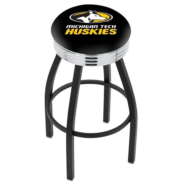 Made for the ultimate sports fan, you will be proud to show where your loyalty lies with this impressive Officially Licensed stool from the Holland Bar Stool Co. This classic L8B3C swivel stool features a single-ring black wrinkle base with a 2 1/2" thick cushion sitting on top of a 2.75" chrome ribbed ring that conceals the swivel for an exceptionally clean look. A state of the art print process is used in applying specially formulated UV vinyl ink in numerous stages to produce a sharp, crisp, clear image to ensure a perfect reproduction of the logo. You won't find a higher quality logo stool on the market. The frame is made from commercial quality 16 gauge, 1 1/4 inch tube steel with solid mig welded joints to guarantee strength and durability. The powder coated finish resists chips and scratches and ensures a long-lasting, rich appearance. The cushion seats are of the highest quality as well, utilizing a breathable, commercial grade vinyl. At the heart of the cushion is highly-dense foam that provides maximum support and will not breakdown in a couple years. If you're going to finish your bar, game room, or man cave do it right- with a logo stool made by the Holland Bar Stool Co.