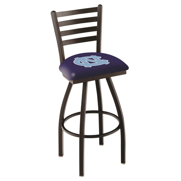 Made for the ultimate sports fan, you will be proud to show where your loyalty lies with this impressive Officially Licensed stool from the Holland Bar Stool Co. This L014 swivel logo stool has a defined Ladder Back style that doesn't just add comfort, but sophistication. A state of the art print process is used in applying specially formulated UV vinyl ink in numerous stages to produce a sharp, crisp, clear image to ensure a perfect reproduction of the logo. You won't find a higher quality logo stool on the market. The frame is made from commercial quality 16 gauge, 1 1/4 inch tube steel with solid mig welded joints to guarantee strength and durability. The powder coated finish resists chips and scratches and ensures a long-lasting, rich appearance. The cushion seats are of the highest quality as well, utilizing a breathable, commercial grade vinyl. At the heart of the cushion is 2 1/2 inches of highly-dense foam that provides maximum support and will not breakdown in a couple years. If you're going to finish your bar, game room, or man cave do it right- with a logo stool made by the Holland Bar Stool Co.