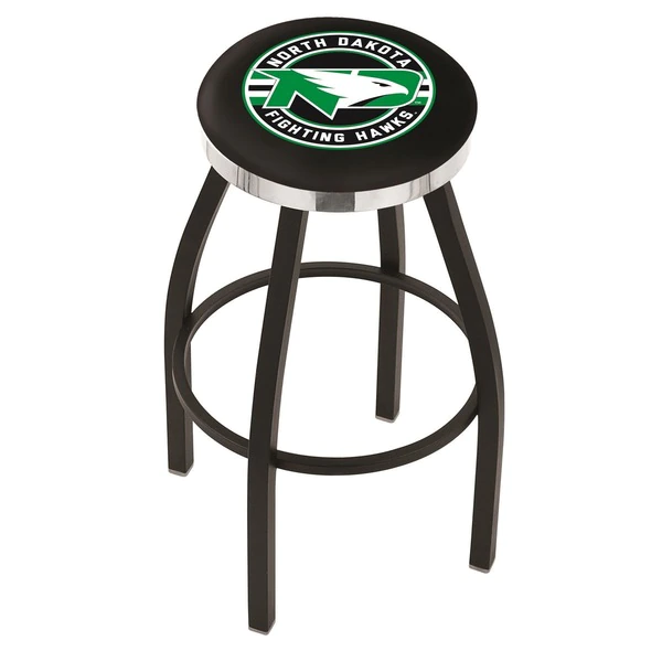 Made for the ultimate sports fan, you will be proud to show where your loyalty lies with this impressive Officially Licensed stool from the Holland Bar Stool Co. This contemporary L8B2C stool has a single-ring black wrinkle base with a 2 1/2" thick cushion sitting on top of a 2" chrome ring that conceals the swivel for an exceptionally clean look. A state of the art print process is used in applying specially formulated UV vinyl ink in numerous stages to produce a sharp, crisp, clear image to ensure a perfect reproduction of the logo. You won't find a higher quality logo stool on the market. The frame is made from commercial quality 16 gauge, 1 1/4 inch tube steel with solid mig welded joints to guarantee strength and durability. The powder coated finish resists chips and scratches and ensures a long-lasting, rich appearance. The cushion seats are of the highest quality as well, utilizing a breathable, commercial grade vinyl. At the heart of the cushion is highly-dense foam that provides maximum support and will not breakdown in a couple years. If you're going to finish your bar, game room, or man cave do it right- with a logo stool made by the Holland Bar Stool Co.