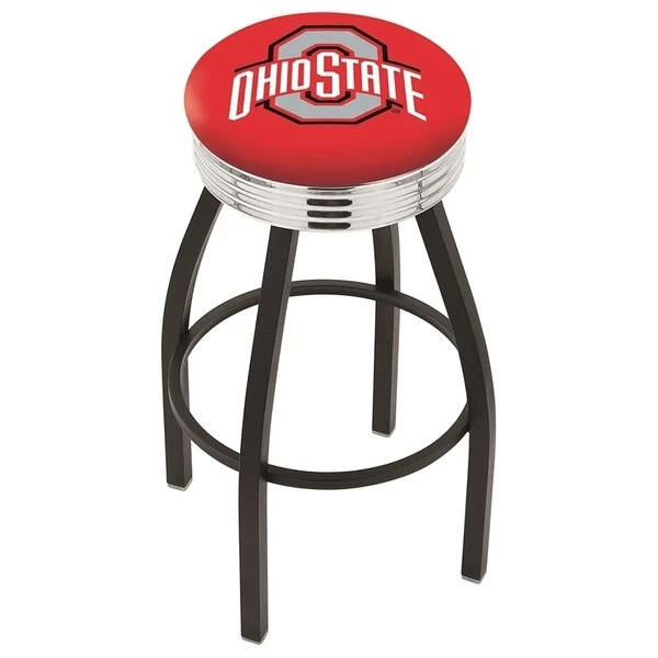 Made for the ultimate sports fan, you will be proud to show where your loyalty lies with this impressive Officially Licensed stool from the Holland Bar Stool Co. This classic L8B3C swivel stool features a single-ring black wrinkle base with a 2 1/2" thick cushion sitting on top of a 2.75" chrome ribbed ring that conceals the swivel for an exceptionally clean look. A state of the art print process is used in applying specially formulated UV vinyl ink in numerous stages to produce a sharp, crisp, clear image to ensure a perfect reproduction of the logo. You won't find a higher quality logo stool on the market. The frame is made from commercial quality 16 gauge, 1 1/4 inch tube steel with solid mig welded joints to guarantee strength and durability. The powder coated finish resists chips and scratches and ensures a long-lasting, rich appearance. The cushion seats are of the highest quality as well, utilizing a breathable, commercial grade vinyl. At the heart of the cushion is highly-dense foam that provides maximum support and will not breakdown in a couple years. If you're going to finish your bar, game room, or man cave do it right- with a logo stool made by the Holland Bar Stool Co.