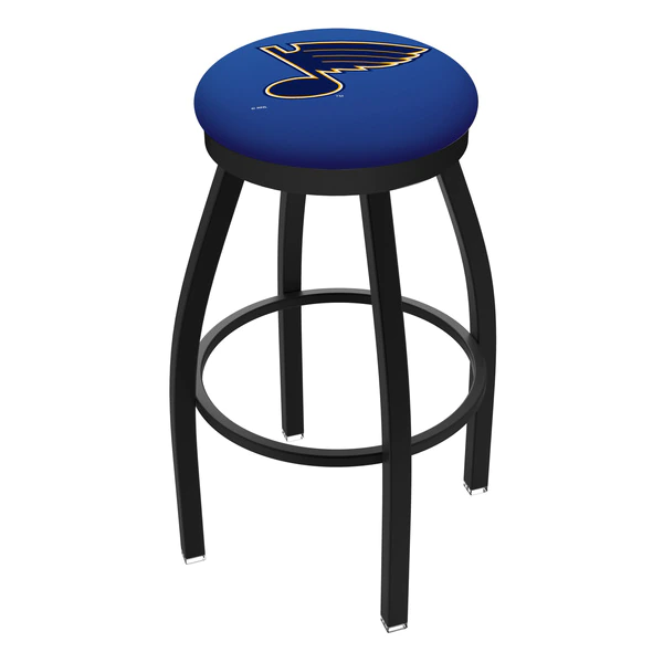 Made for the ultimate sports fan, you will be proud to show where your loyalty lies with this impressive Officially Licensed stool from the Holland Bar Stool Co. This contemporary L8B2B stool has a single-ring black wrinkle base with a 2 1/2" thick cushion sitting on top of a 2" black wrinkle ring that conceals the swivel for an exceptionally clean look. A state of the art print process is used in applying specially formulated UV vinyl ink in numerous stages to produce a sharp, crisp, clear image to ensure a perfect reproduction of the logo. You won't find a higher quality logo stool on the market. The frame is made from commercial quality 16 gauge, 1 1/4 inch tube steel with solid mig welded joints to guarantee strength and durability. The powder coated finish resists chips and scratches and ensures a long-lasting, rich appearance. The cushion seats are of the highest quality as well, utilizing a breathable, commercial grade vinyl. At the heart of the cushion is highly-dense foam that provides maximum support and will not breakdown in a couple years. If you're going to finish your bar, game room, or man cave do it right- with a logo stool made by the Holland Bar Stool Co.