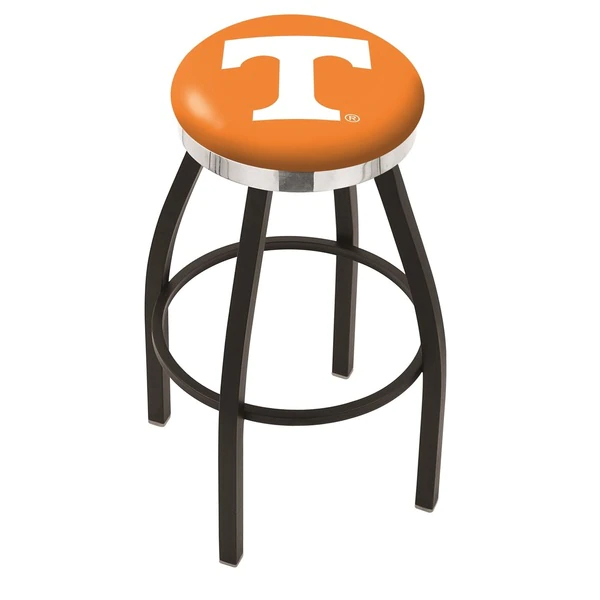 Made for the ultimate sports fan, you will be proud to show where your loyalty lies with this impressive Officially Licensed stool from the Holland Bar Stool Co. This contemporary L8B2C stool has a single-ring black wrinkle base with a 2 1/2" thick cushion sitting on top of a 2" chrome ring that conceals the swivel for an exceptionally clean look. A state of the art print process is used in applying specially formulated UV vinyl ink in numerous stages to produce a sharp, crisp, clear image to ensure a perfect reproduction of the logo. You won't find a higher quality logo stool on the market. The frame is made from commercial quality 16 gauge, 1 1/4 inch tube steel with solid mig welded joints to guarantee strength and durability. The powder coated finish resists chips and scratches and ensures a long-lasting, rich appearance. The cushion seats are of the highest quality as well, utilizing a breathable, commercial grade vinyl. At the heart of the cushion is highly-dense foam that provides maximum support and will not breakdown in a couple years. If you're going to finish your bar, game room, or man cave do it right- with a logo stool made by the Holland Bar Stool Co.