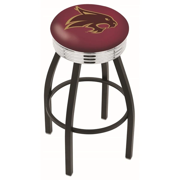 Made for the ultimate sports fan, you will be proud to show where your loyalty lies with this impressive Officially Licensed stool from the Holland Bar Stool Co. This classic L8B3C swivel stool features a single-ring black wrinkle base with a 2 1/2" thick cushion sitting on top of a 2.75" chrome ribbed ring that conceals the swivel for an exceptionally clean look. A state of the art print process is used in applying specially formulated UV vinyl ink in numerous stages to produce a sharp, crisp, clear image to ensure a perfect reproduction of the logo. You won't find a higher quality logo stool on the market. The frame is made from commercial quality 16 gauge, 1 1/4 inch tube steel with solid mig welded joints to guarantee strength and durability. The powder coated finish resists chips and scratches and ensures a long-lasting, rich appearance. The cushion seats are of the highest quality as well, utilizing a breathable, commercial grade vinyl. At the heart of the cushion is highly-dense foam that provides maximum support and will not breakdown in a couple years. If you're going to finish your bar, game room, or man cave do it right- with a logo stool made by the Holland Bar Stool Co.