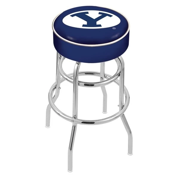 Made for the ultimate sports fan, you will be proud to show where your loyalty lies with this impressive Officially Licensed stool from the Holland Bar Stool Co. This L7C1 double ring swivel stool has a style that brings you back in time. A state of the art print process is used in applying specially formulated UV vinyl ink in numerous stages to produce a sharp, crisp, clear image to ensure a perfect reproduction of the logo. You won't find a higher quality logo stool on the market. The frame is made from commercial grade steel that is strong, durable, and triple chrome-plated to guarantee a long-lasting, rich finish capable of withstanding the abuse of your rowdiest of friends for years to come. The cushion seats are of the highest quality as well, utilizing a breathable, commercial grade vinyl. At the heart of the cushion is highly-dense foam that provides maximum support and will not breakdown in a couple years. If you're going to finish your bar, game room, or man cave do it right- with a logo stool made by the Holland Bar Stool Co.