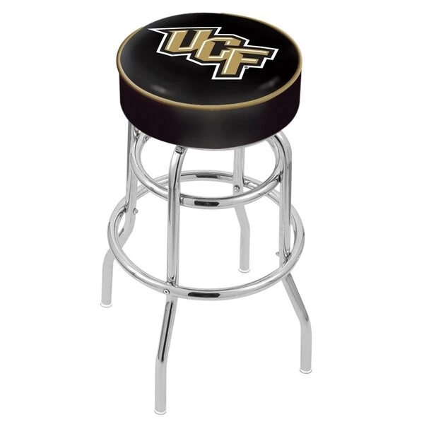 Made for the ultimate sports fan, you will be proud to show where your loyalty lies with this impressive Officially Licensed stool from the Holland Bar Stool Co. This L7C1 double ring swivel stool has a style that brings you back in time. A state of the art print process is used in applying specially formulated UV vinyl ink in numerous stages to produce a sharp, crisp, clear image to ensure a perfect reproduction of the logo. You won't find a higher quality logo stool on the market. The frame is made from commercial grade steel that is strong, durable, and triple chrome-plated to guarantee a long-lasting, rich finish capable of withstanding the abuse of your rowdiest of friends for years to come. The cushion seats are of the highest quality as well, utilizing a breathable, commercial grade vinyl. At the heart of the cushion is highly-dense foam that provides maximum support and will not breakdown in a couple years. If you're going to finish your bar, game room, or man cave do it right- with a logo stool made by the Holland Bar Stool Co.
