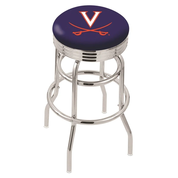 Made for the ultimate sports fan, you will be proud to show where your loyalty lies with this impressive Officially Licensed stool from the Holland Bar Stool Co. This L7C3C double ring swivel stool has a style that brings you back in time featuring a 2.75" chrome ribbed accent ring that conceals the swivel for a very clean look. A state of the art print process is used in applying specially formulated UV vinyl ink in numerous stages to produce a sharp, crisp, clear image to ensure a perfect reproduction of the logo. You won't find a higher quality logo stool on the market. The frame is made from commercial grade steel that is strong, durable, and triple chrome-plated to guarantee a long-lasting, rich finish capable of withstanding the abuse of your rowdiest of friends for years to come. The cushion seats are of the highest quality as well, utilizing a breathable, commercial grade vinyl. At the heart of the cushion is 2 1/2 inches of highly-dense foam that provides maximum support and will not breakdown in a couple years. If you're going to finish your bar, game room, or man cave do it right- with a logo stool made by the Holland Bar Stool Co.