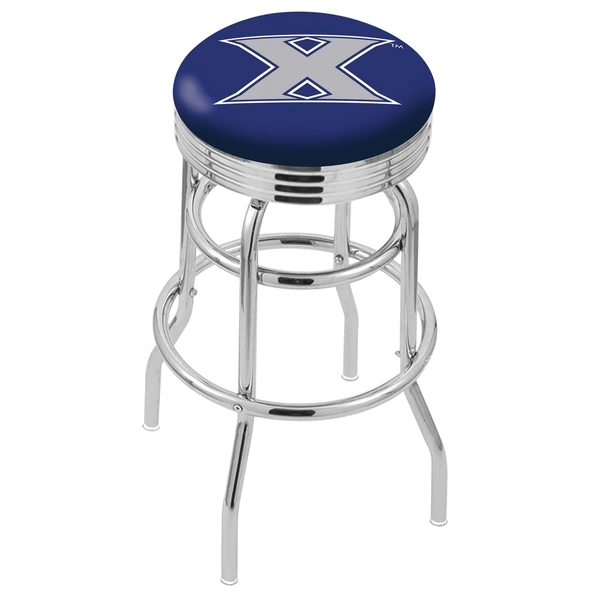 Made for the ultimate sports fan, you will be proud to show where your loyalty lies with this impressive Officially Licensed stool from the Holland Bar Stool Co. This L7C3C double ring swivel stool has a style that brings you back in time featuring a 2.75" chrome ribbed accent ring that conceals the swivel for a very clean look. A state of the art print process is used in applying specially formulated UV vinyl ink in numerous stages to produce a sharp, crisp, clear image to ensure a perfect reproduction of the logo. You won't find a higher quality logo stool on the market. The frame is made from commercial grade steel that is strong, durable, and triple chrome-plated to guarantee a long-lasting, rich finish capable of withstanding the abuse of your rowdiest of friends for years to come. The cushion seats are of the highest quality as well, utilizing a breathable, commercial grade vinyl. At the heart of the cushion is 2 1/2 inches of highly-dense foam that provides maximum support and will not breakdown in a couple years. If you're going to finish your bar, game room, or man cave do it right- with a logo stool made by the Holland Bar Stool Co.