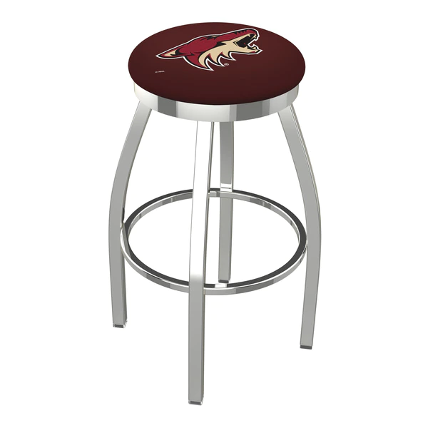 Made for the ultimate sports fan, you will be proud to show where your loyalty lies with this impressive Officially Licensed stool from the Holland Bar Stool Co. This contemporary L8C2C swivel stool has a single-ring chrome base with a 2 1/2" thick cushion sitting on top of a 2" chrome ring that conceals the swivel for an exceptionally clean look. A state of the art print process is used in applying specially formulated UV vinyl ink in numerous stages to produce a sharp, crisp, clear image to ensure a perfect reproduction of the logo. You won't find a higher quality logo stool on the market. The frame is made from commercial quality 16 gauge, 1 1/4 inch tube steel with solid mig welded joints to guarantee strength and durability. The triple chrome plated finish resists chips and scratches and ensures a long-lasting, rich appearance. The cushion seats are of the highest quality as well, utilizing a breathable, commercial grade vinyl. At the heart of the cushion is highly-dense foam that provides maximum support and will not breakdown in a couple years. If you're going to finish your bar, game room, or man cave do it right- with a logo stool made by the Holland Bar Stool Co.
