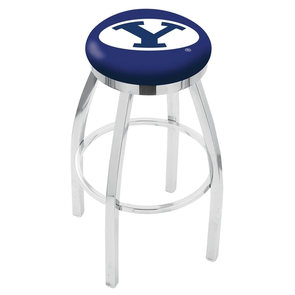Made for the ultimate sports fan, you will be proud to show where your loyalty lies with this impressive Officially Licensed stool from the Holland Bar Stool Co. This contemporary L8C2C swivel stool has a single-ring chrome base with a 2 1/2" thick cushion sitting on top of a 2" chrome ring that conceals the swivel for an exceptionally clean look. A state of the art print process is used in applying specially formulated UV vinyl ink in numerous stages to produce a sharp, crisp, clear image to ensure a perfect reproduction of the logo. You won't find a higher quality logo stool on the market. The frame is made from commercial quality 16 gauge, 1 1/4 inch tube steel with solid mig welded joints to guarantee strength and durability. The triple chrome plated finish resists chips and scratches and ensures a long-lasting, rich appearance. The cushion seats are of the highest quality as well, utilizing a breathable, commercial grade vinyl. At the heart of the cushion is highly-dense foam that provides maximum support and will not breakdown in a couple years. If you're going to finish your bar, game room, or man cave do it right- with a logo stool made by the Holland Bar Stool Co.