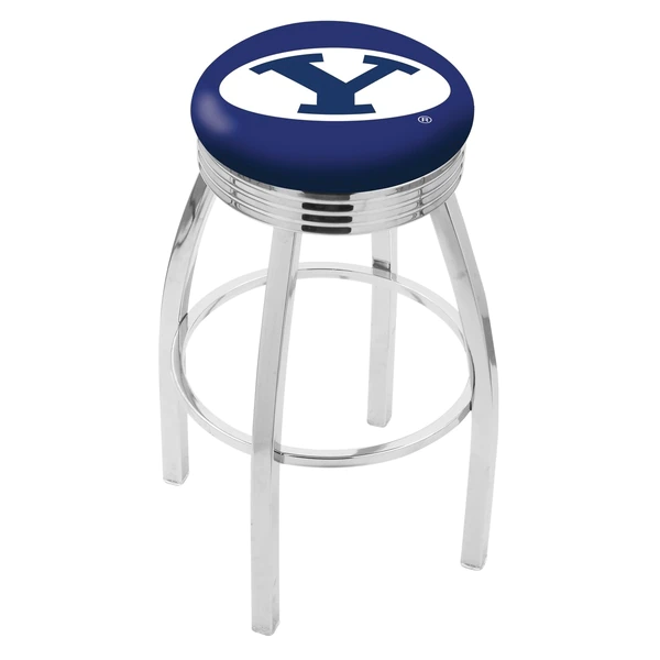 Made for the ultimate sports fan, you will be proud to show where your loyalty lies with this impressive Officially Licensed stool from the Holland Bar Stool Co. This classic L8C3C stool features a single-ring chrome base with a 2 1/2" thick cushion sitting on top of a 2.75" chrome ribbed ring that conceals the swivel for an exceptionally clean look. A state of the art print process is used in applying specially formulated UV vinyl ink in numerous stages to produce a sharp, crisp, clear image to ensure a perfect reproduction of the logo. You won't find a higher quality logo stool on the market. The frame is made from commercial quality 16 gauge, 1 1/4 inch tube steel with solid mig welded joints to guarantee strength and durability. The triple chrome plated finish resists chips and scratches and ensures a long-lasting, rich appearance. The cushion seats are of the highest quality as well, utilizing a breathable, commercial grade vinyl. At the heart of the cushion is highly-dense foam that provides maximum support and will not breakdown in a couple years. If you're going to finish your bar, game room, or man cave do it right- with a logo stool made by the Holland Bar Stool Co.