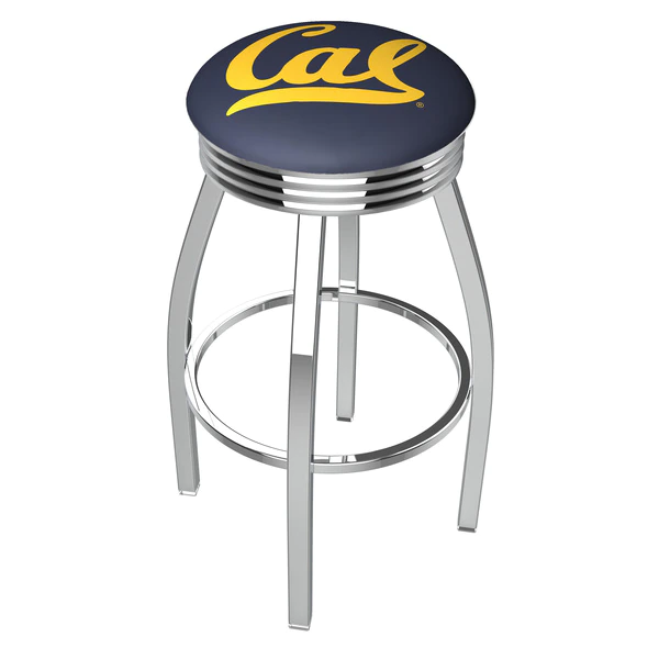 Made for the ultimate sports fan, you will be proud to show where your loyalty lies with this impressive Officially Licensed stool from the Holland Bar Stool Co. This classic L8C3C stool features a single-ring chrome base with a 2 1/2" thick cushion sitting on top of a 2.75" chrome ribbed ring that conceals the swivel for an exceptionally clean look. A state of the art print process is used in applying specially formulated UV vinyl ink in numerous stages to produce a sharp, crisp, clear image to ensure a perfect reproduction of the logo. You won't find a higher quality logo stool on the market. The frame is made from commercial quality 16 gauge, 1 1/4 inch tube steel with solid mig welded joints to guarantee strength and durability. The triple chrome plated finish resists chips and scratches and ensures a long-lasting, rich appearance. The cushion seats are of the highest quality as well, utilizing a breathable, commercial grade vinyl. At the heart of the cushion is highly-dense foam that provides maximum support and will not breakdown in a couple years. If you're going to finish your bar, game room, or man cave do it right- with a logo stool made by the Holland Bar Stool Co.
