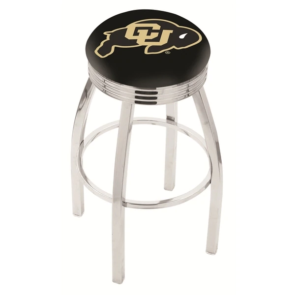 Made for the ultimate sports fan, you will be proud to show where your loyalty lies with this impressive Officially Licensed stool from the Holland Bar Stool Co. This classic L8C3C stool features a single-ring chrome base with a 2 1/2" thick cushion sitting on top of a 2.75" chrome ribbed ring that conceals the swivel for an exceptionally clean look. A state of the art print process is used in applying specially formulated UV vinyl ink in numerous stages to produce a sharp, crisp, clear image to ensure a perfect reproduction of the logo. You won't find a higher quality logo stool on the market. The frame is made from commercial quality 16 gauge, 1 1/4 inch tube steel with solid mig welded joints to guarantee strength and durability. The triple chrome plated finish resists chips and scratches and ensures a long-lasting, rich appearance. The cushion seats are of the highest quality as well, utilizing a breathable, commercial grade vinyl. At the heart of the cushion is highly-dense foam that provides maximum support and will not breakdown in a couple years. If you're going to finish your bar, game room, or man cave do it right- with a logo stool made by the Holland Bar Stool Co.