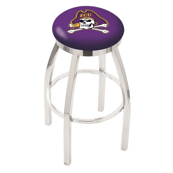 Made for the ultimate sports fan, you will be proud to show where your loyalty lies with this impressive Officially Licensed stool from the Holland Bar Stool Co. This contemporary L8C2C swivel stool has a single-ring chrome base with a 2 1/2" thick cushion sitting on top of a 2" chrome ring that conceals the swivel for an exceptionally clean look. A state of the art print process is used in applying specially formulated UV vinyl ink in numerous stages to produce a sharp, crisp, clear image to ensure a perfect reproduction of the logo. You won't find a higher quality logo stool on the market. The frame is made from commercial quality 16 gauge, 1 1/4 inch tube steel with solid mig welded joints to guarantee strength and durability. The triple chrome plated finish resists chips and scratches and ensures a long-lasting, rich appearance. The cushion seats are of the highest quality as well, utilizing a breathable, commercial grade vinyl. At the heart of the cushion is highly-dense foam that provides maximum support and will not breakdown in a couple years. If you're going to finish your bar, game room, or man cave do it right- with a logo stool made by the Holland Bar Stool Co.