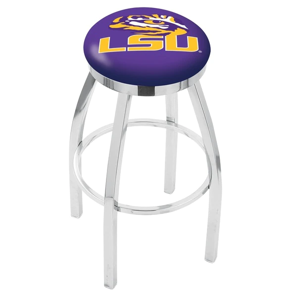 Made for the ultimate sports fan, you will be proud to show where your loyalty lies with this impressive Officially Licensed stool from the Holland Bar Stool Co. This contemporary L8C2C swivel stool has a single-ring chrome base with a 2 1/2" thick cushion sitting on top of a 2" chrome ring that conceals the swivel for an exceptionally clean look. A state of the art print process is used in applying specially formulated UV vinyl ink in numerous stages to produce a sharp, crisp, clear image to ensure a perfect reproduction of the logo. You won't find a higher quality logo stool on the market. The frame is made from commercial quality 16 gauge, 1 1/4 inch tube steel with solid mig welded joints to guarantee strength and durability. The triple chrome plated finish resists chips and scratches and ensures a long-lasting, rich appearance. The cushion seats are of the highest quality as well, utilizing a breathable, commercial grade vinyl. At the heart of the cushion is highly-dense foam that provides maximum support and will not breakdown in a couple years. If you're going to finish your bar, game room, or man cave do it right- with a logo stool made by the Holland Bar Stool Co.