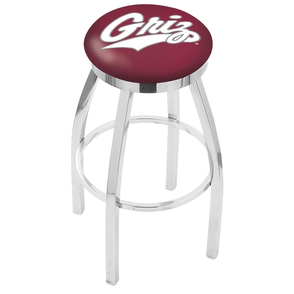 Made for the ultimate sports fan, you will be proud to show where your loyalty lies with this impressive Officially Licensed stool from the Holland Bar Stool Co. This contemporary L8C2C swivel stool has a single-ring chrome base with a 2 1/2" thick cushion sitting on top of a 2" chrome ring that conceals the swivel for an exceptionally clean look. A state of the art print process is used in applying specially formulated UV vinyl ink in numerous stages to produce a sharp, crisp, clear image to ensure a perfect reproduction of the logo. You won't find a higher quality logo stool on the market. The frame is made from commercial quality 16 gauge, 1 1/4 inch tube steel with solid mig welded joints to guarantee strength and durability. The triple chrome plated finish resists chips and scratches and ensures a long-lasting, rich appearance. The cushion seats are of the highest quality as well, utilizing a breathable, commercial grade vinyl. At the heart of the cushion is highly-dense foam that provides maximum support and will not breakdown in a couple years. If you're going to finish your bar, game room, or man cave do it right- with a logo stool made by the Holland Bar Stool Co.
