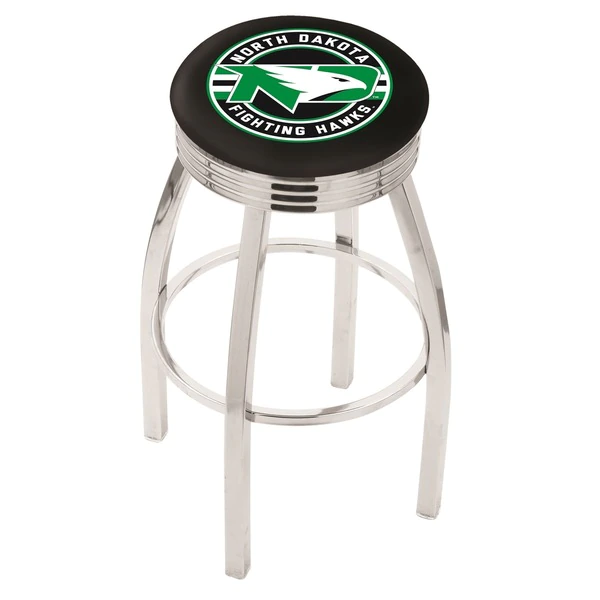 Made for the ultimate sports fan, you will be proud to show where your loyalty lies with this impressive Officially Licensed stool from the Holland Bar Stool Co. This classic L8C3C stool features a single-ring chrome base with a 2 1/2" thick cushion sitting on top of a 2.75" chrome ribbed ring that conceals the swivel for an exceptionally clean look. A state of the art print process is used in applying specially formulated UV vinyl ink in numerous stages to produce a sharp, crisp, clear image to ensure a perfect reproduction of the logo. You won't find a higher quality logo stool on the market. The frame is made from commercial quality 16 gauge, 1 1/4 inch tube steel with solid mig welded joints to guarantee strength and durability. The triple chrome plated finish resists chips and scratches and ensures a long-lasting, rich appearance. The cushion seats are of the highest quality as well, utilizing a breathable, commercial grade vinyl. At the heart of the cushion is highly-dense foam that provides maximum support and will not breakdown in a couple years. If you're going to finish your bar, game room, or man cave do it right- with a logo stool made by the Holland Bar Stool Co.