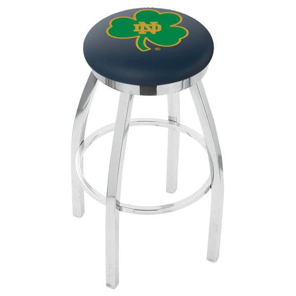 Made for the ultimate sports fan, you will be proud to show where your loyalty lies with this impressive Officially Licensed stool from the Holland Bar Stool Co. This contemporary L8C2C swivel stool has a single-ring chrome base with a 2 1/2" thick cushion sitting on top of a 2" chrome ring that conceals the swivel for an exceptionally clean look. A state of the art print process is used in applying specially formulated UV vinyl ink in numerous stages to produce a sharp, crisp, clear image to ensure a perfect reproduction of the logo. You won't find a higher quality logo stool on the market. The frame is made from commercial quality 16 gauge, 1 1/4 inch tube steel with solid mig welded joints to guarantee strength and durability. The triple chrome plated finish resists chips and scratches and ensures a long-lasting, rich appearance. The cushion seats are of the highest quality as well, utilizing a breathable, commercial grade vinyl. At the heart of the cushion is highly-dense foam that provides maximum support and will not breakdown in a couple years. If you're going to finish your bar, game room, or man cave do it right- with a logo stool made by the Holland Bar Stool Co.