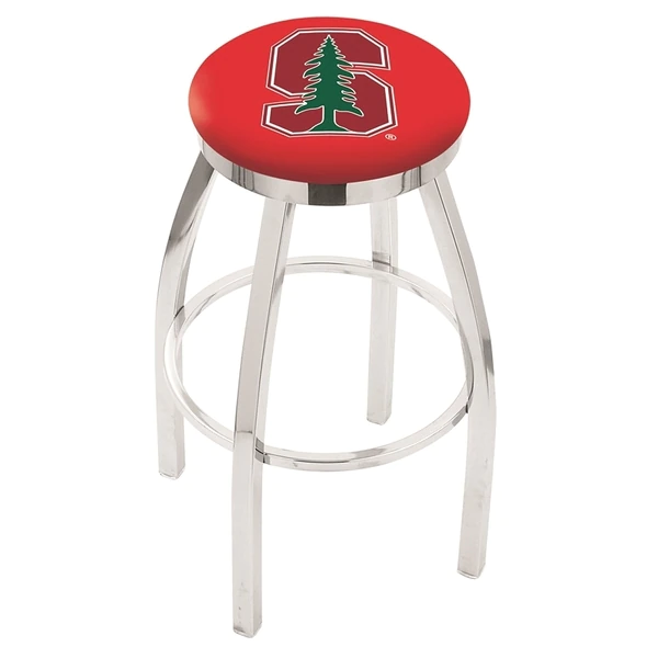 Made for the ultimate sports fan, you will be proud to show where your loyalty lies with this impressive Officially Licensed stool from the Holland Bar Stool Co. This contemporary L8C2C swivel stool has a single-ring chrome base with a 2 1/2" thick cushion sitting on top of a 2" chrome ring that conceals the swivel for an exceptionally clean look. A state of the art print process is used in applying specially formulated UV vinyl ink in numerous stages to produce a sharp, crisp, clear image to ensure a perfect reproduction of the logo. You won't find a higher quality logo stool on the market. The frame is made from commercial quality 16 gauge, 1 1/4 inch tube steel with solid mig welded joints to guarantee strength and durability. The triple chrome plated finish resists chips and scratches and ensures a long-lasting, rich appearance. The cushion seats are of the highest quality as well, utilizing a breathable, commercial grade vinyl. At the heart of the cushion is highly-dense foam that provides maximum support and will not breakdown in a couple years. If you're going to finish your bar, game room, or man cave do it right- with a logo stool made by the Holland Bar Stool Co.
