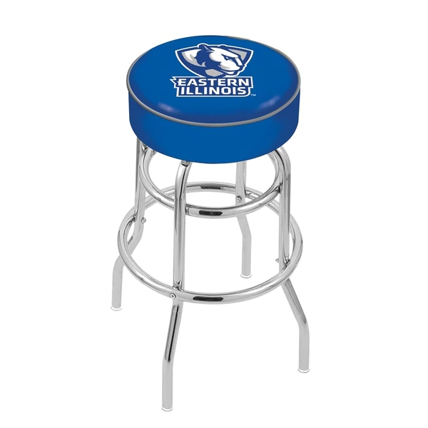 Made for the ultimate sports fan, you will be proud to show where your loyalty lies with this impressive Officially Licensed stool from the Holland Bar Stool Co. This L7C1 double ring swivel stool has a style that brings you back in time. A state of the art print process is used in applying specially formulated UV vinyl ink in numerous stages to produce a sharp, crisp, clear image to ensure a perfect reproduction of the logo. You won't find a higher quality logo stool on the market. The frame is made from commercial grade steel that is strong, durable, and triple chrome-plated to guarantee a long-lasting, rich finish capable of withstanding the abuse of your rowdiest of friends for years to come. The cushion seats are of the highest quality as well, utilizing a breathable, commercial grade vinyl. At the heart of the cushion is highly-dense foam that provides maximum support and will not breakdown in a couple years. If you're going to finish your bar, game room, or man cave do it right- with a logo stool made by the Holland Bar Stool Co.