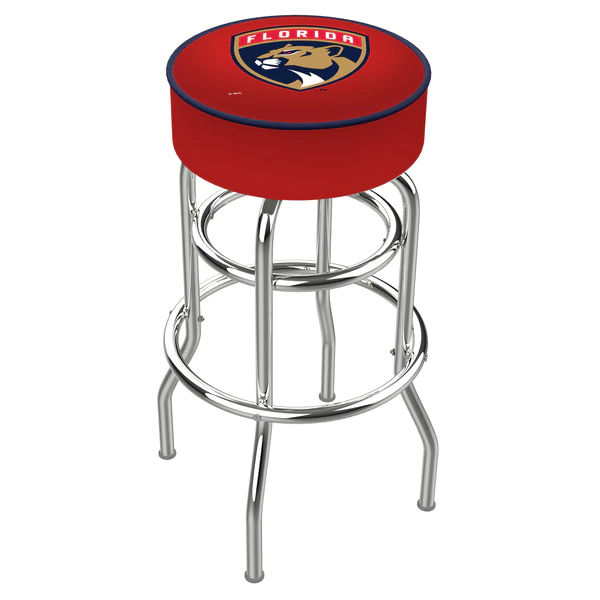Made for the ultimate sports fan, you will be proud to show where your loyalty lies with this impressive Officially Licensed stool from the Holland Bar Stool Co. This L7C1 double ring swivel stool has a style that brings you back in time. A state of the art print process is used in applying specially formulated UV vinyl ink in numerous stages to produce a sharp, crisp, clear image to ensure a perfect reproduction of the logo. You won't find a higher quality logo stool on the market. The frame is made from commercial grade steel that is strong, durable, and triple chrome-plated to guarantee a long-lasting, rich finish capable of withstanding the abuse of your rowdiest of friends for years to come. The cushion seats are of the highest quality as well, utilizing a breathable, commercial grade vinyl. At the heart of the cushion is highly-dense foam that provides maximum support and will not breakdown in a couple years. If you're going to finish your bar, game room, or man cave do it right- with a logo stool made by the Holland Bar Stool Co.