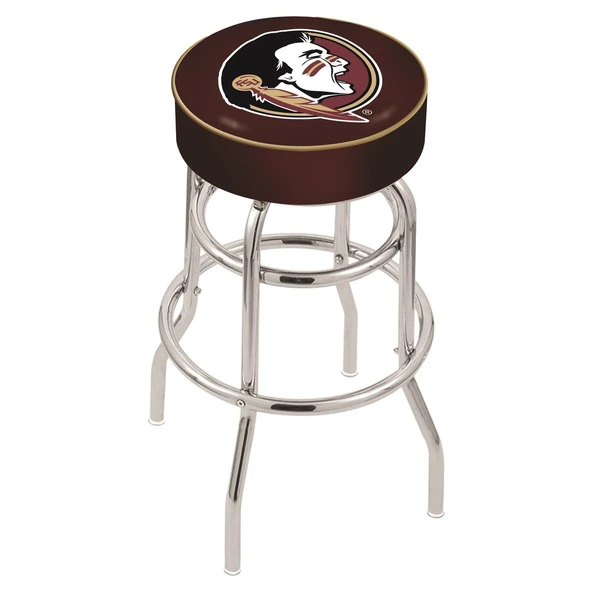 Made for the ultimate sports fan, you will be proud to show where your loyalty lies with this impressive Officially Licensed stool from the Holland Bar Stool Co. This L7C1 double ring swivel stool has a style that brings you back in time. A state of the art print process is used in applying specially formulated UV vinyl ink in numerous stages to produce a sharp, crisp, clear image to ensure a perfect reproduction of the logo. You won't find a higher quality logo stool on the market. The frame is made from commercial grade steel that is strong, durable, and triple chrome-plated to guarantee a long-lasting, rich finish capable of withstanding the abuse of your rowdiest of friends for years to come. The cushion seats are of the highest quality as well, utilizing a breathable, commercial grade vinyl. At the heart of the cushion is highly-dense foam that provides maximum support and will not breakdown in a couple years. If you're going to finish your bar, game room, or man cave do it right- with a logo stool made by the Holland Bar Stool Co.