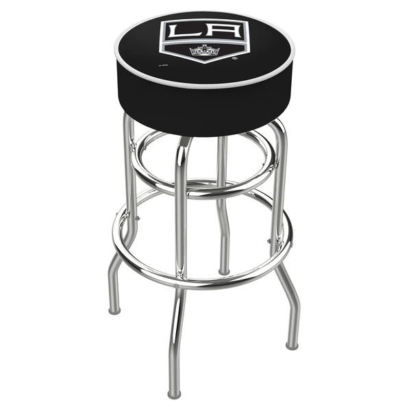 Made for the ultimate sports fan, you will be proud to show where your loyalty lies with this impressive Officially Licensed stool from the Holland Bar Stool Co. This L7C1 double ring swivel stool has a style that brings you back in time. A state of the art print process is used in applying specially formulated UV vinyl ink in numerous stages to produce a sharp, crisp, clear image to ensure a perfect reproduction of the logo. You won't find a higher quality logo stool on the market. The frame is made from commercial grade steel that is strong, durable, and triple chrome-plated to guarantee a long-lasting, rich finish capable of withstanding the abuse of your rowdiest of friends for years to come. The cushion seats are of the highest quality as well, utilizing a breathable, commercial grade vinyl. At the heart of the cushion is highly-dense foam that provides maximum support and will not breakdown in a couple years. If you're going to finish your bar, game room, or man cave do it right- with a logo stool made by the Holland Bar Stool Co.