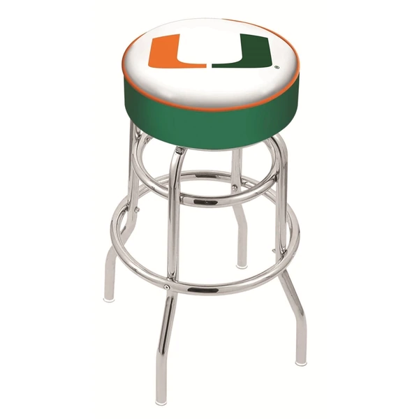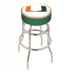 Made for the ultimate sports fan, you will be proud to show where your loyalty lies with this impressive Officially Licensed stool from the Holland Bar Stool Co. This L7C1 double ring swivel stool has a style that brings you back in time. A state of the art print process is used in applying specially formulated UV vinyl ink in numerous stages to produce a sharp, crisp, clear image to ensure a perfect reproduction of the logo. You won't find a higher quality logo stool on the market. The frame is made from commercial grade steel that is strong, durable, and triple chrome-plated to guarantee a long-lasting, rich finish capable of withstanding the abuse of your rowdiest of friends for years to come. The cushion seats are of the highest quality as well, utilizing a breathable, commercial grade vinyl. At the heart of the cushion is highly-dense foam that provides maximum support and will not breakdown in a couple years. If you're going to finish your bar, game room, or man cave do it right- with a logo stool made by the Holland Bar Stool Co.