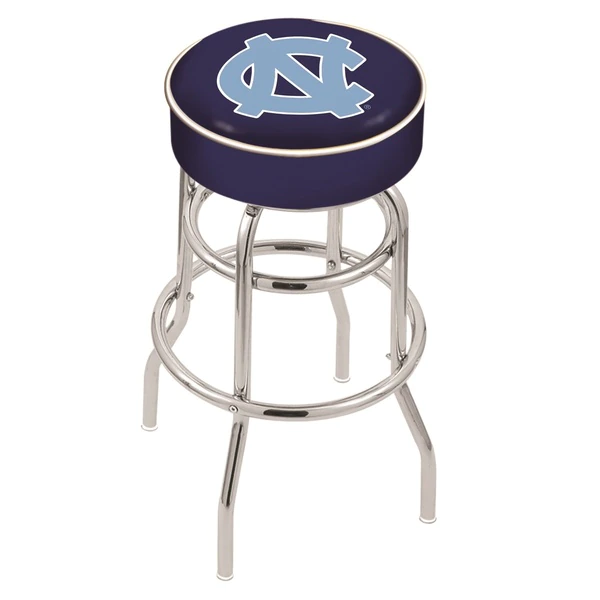 Made for the ultimate sports fan, you will be proud to show where your loyalty lies with this impressive Officially Licensed stool from the Holland Bar Stool Co. This L7C1 double ring swivel stool has a style that brings you back in time. A state of the art print process is used in applying specially formulated UV vinyl ink in numerous stages to produce a sharp, crisp, clear image to ensure a perfect reproduction of the logo. You won't find a higher quality logo stool on the market. The frame is made from commercial grade steel that is strong, durable, and triple chrome-plated to guarantee a long-lasting, rich finish capable of withstanding the abuse of your rowdiest of friends for years to come. The cushion seats are of the highest quality as well, utilizing a breathable, commercial grade vinyl. At the heart of the cushion is highly-dense foam that provides maximum support and will not breakdown in a couple years. If you're going to finish your bar, game room, or man cave do it right- with a logo stool made by the Holland Bar Stool Co.