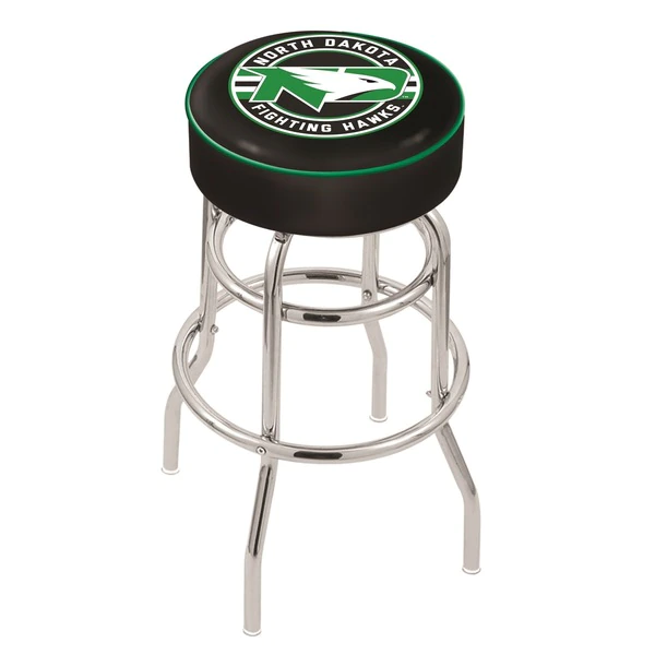 Made for the ultimate sports fan, you will be proud to show where your loyalty lies with this impressive Officially Licensed stool from the Holland Bar Stool Co. This L7C1 double ring swivel stool has a style that brings you back in time. A state of the art print process is used in applying specially formulated UV vinyl ink in numerous stages to produce a sharp, crisp, clear image to ensure a perfect reproduction of the logo. You won't find a higher quality logo stool on the market. The frame is made from commercial grade steel that is strong, durable, and triple chrome-plated to guarantee a long-lasting, rich finish capable of withstanding the abuse of your rowdiest of friends for years to come. The cushion seats are of the highest quality as well, utilizing a breathable, commercial grade vinyl. At the heart of the cushion is highly-dense foam that provides maximum support and will not breakdown in a couple years. If you're going to finish your bar, game room, or man cave do it right- with a logo stool made by the Holland Bar Stool Co.