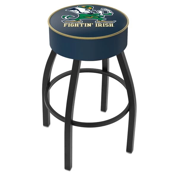 Made for the ultimate sports fan, you will be proud to show where your loyalty lies with this impressive Officially Licensed stool from the Holland Bar Stool Co. This contemporary L8B1 stool features a single-ring black wrinkle base with a 5" scooped cushion that conceals the swivel for an exceptionally clean look. A state of the art print process is used in applying specially formulated UV vinyl ink in numerous stages to produce a sharp, crisp, clear image to ensure a perfect reproduction of the logo. You won't find a higher quality logo stool on the market. The frame is made from commercial quality 16 gauge, 1 1/4 inch tube steel with solid mig welded joints to guarantee strength and durability. The powder coated finish resists chips and scratches and ensures a long-lasting, rich appearance. The cushion seats are of the highest quality as well, utilizing a breathable, commercial grade vinyl. At the heart of the cushion is highly-dense foam that provides maximum support and will not breakdown in a couple years. If you're going to finish your bar, game room, or man cave do it right- with a logo stool made by the Holland Bar Stool Co.