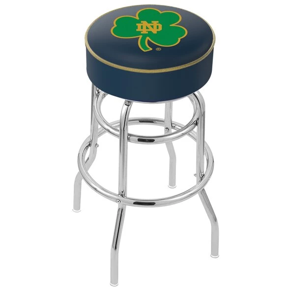 Made for the ultimate sports fan, you will be proud to show where your loyalty lies with this impressive Officially Licensed stool from the Holland Bar Stool Co. This L7C1 double ring swivel stool has a style that brings you back in time. A state of the art print process is used in applying specially formulated UV vinyl ink in numerous stages to produce a sharp, crisp, clear image to ensure a perfect reproduction of the logo. You won't find a higher quality logo stool on the market. The frame is made from commercial grade steel that is strong, durable, and triple chrome-plated to guarantee a long-lasting, rich finish capable of withstanding the abuse of your rowdiest of friends for years to come. The cushion seats are of the highest quality as well, utilizing a breathable, commercial grade vinyl. At the heart of the cushion is highly-dense foam that provides maximum support and will not breakdown in a couple years. If you're going to finish your bar, game room, or man cave do it right- with a logo stool made by the Holland Bar Stool Co.