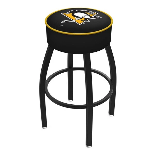 Made for the ultimate sports fan, you will be proud to show where your loyalty lies with this impressive Officially Licensed stool from the Holland Bar Stool Co. This contemporary L8B1 stool features a single-ring black wrinkle base with a 5" scooped cushion that conceals the swivel for an exceptionally clean look. A state of the art print process is used in applying specially formulated UV vinyl ink in numerous stages to produce a sharp, crisp, clear image to ensure a perfect reproduction of the logo. You won't find a higher quality logo stool on the market. The frame is made from commercial quality 16 gauge, 1 1/4 inch tube steel with solid mig welded joints to guarantee strength and durability. The powder coated finish resists chips and scratches and ensures a long-lasting, rich appearance. The cushion seats are of the highest quality as well, utilizing a breathable, commercial grade vinyl. At the heart of the cushion is highly-dense foam that provides maximum support and will not breakdown in a couple years. If you're going to finish your bar, game room, or man cave do it right- with a logo stool made by the Holland Bar Stool Co.