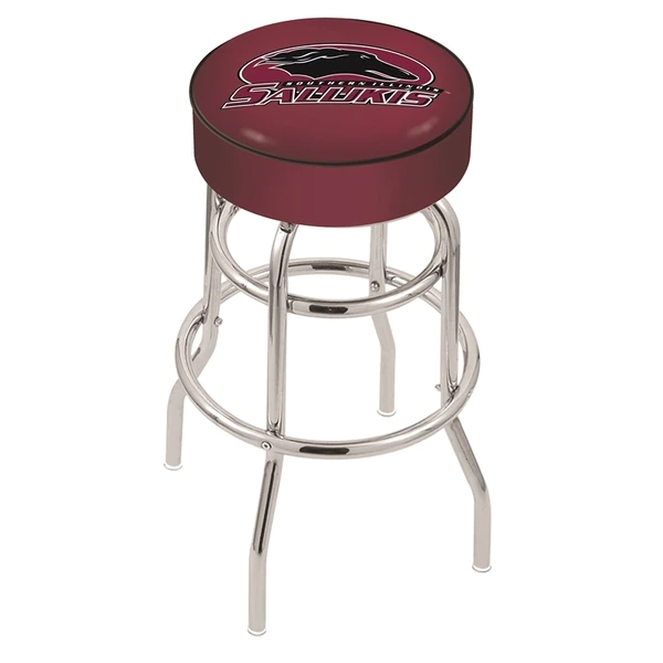 Made for the ultimate sports fan, you will be proud to show where your loyalty lies with this impressive Officially Licensed stool from the Holland Bar Stool Co. This L7C1 double ring swivel stool has a style that brings you back in time. A state of the art print process is used in applying specially formulated UV vinyl ink in numerous stages to produce a sharp, crisp, clear image to ensure a perfect reproduction of the logo. You won't find a higher quality logo stool on the market. The frame is made from commercial grade steel that is strong, durable, and triple chrome-plated to guarantee a long-lasting, rich finish capable of withstanding the abuse of your rowdiest of friends for years to come. The cushion seats are of the highest quality as well, utilizing a breathable, commercial grade vinyl. At the heart of the cushion is highly-dense foam that provides maximum support and will not breakdown in a couple years. If you're going to finish your bar, game room, or man cave do it right- with a logo stool made by the Holland Bar Stool Co.