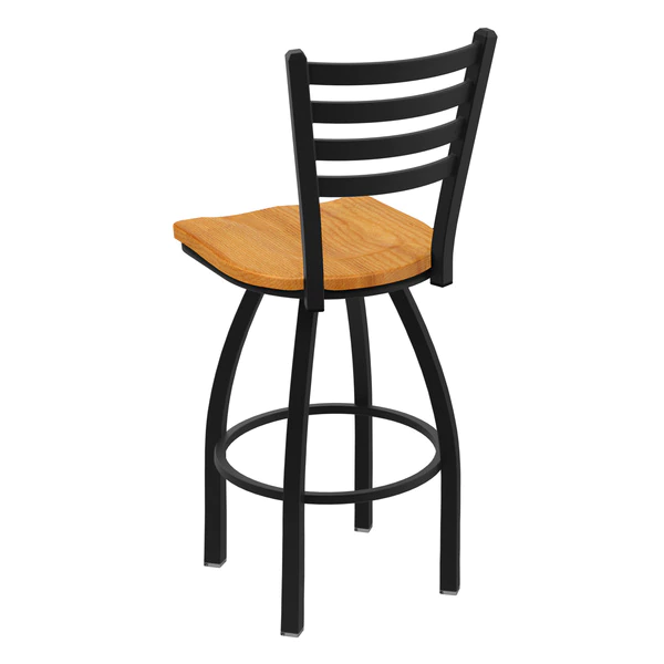 Customize your very own counter stool with the help of the Holland Bar Stool Co. This Black Wrinkle Jackie swivel counter stool has a contemporary design and provides superb back support for exceptional comfort. The frame is made from commercial quality 16 gauge, 1 1/4 inch tube steel with solid mig welded joints to guarantee strength and durability. The powder coated finish resists chips and scratches and ensures a long-lasting, rich appearance. The wood seats are 1 1/4 inch solid hardwood (oak or maple) and are dished for amazing posterior comfort, making sitting for minutes or hours a pleasure. The cushion seats are of the highest quality as well, utilizing a breathable, commercial grade vinyl or fabric. At the heart of the cushion is 2 1/2 inches of highly-dense foam that provides maximum support and will not breakdown in a couple years. You won't find a higher quality stool on the market. If you are going to finish your bar or dining area – do it right, with a stool from the Holland Bar Stool Co.