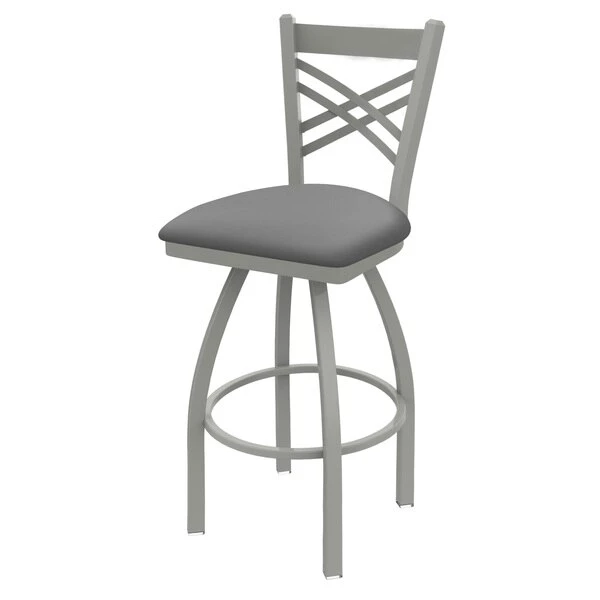 Customize your very own counter stool with the help of the Holland Bar Stool Co. This Anodized Nickel Catalina swivel counter stool has a contemporary design and provides superb back support for exceptional comfort. The frame is made from commercial quality 16 gauge, 1 1/4 inch tube steel with solid mig welded joints to guarantee strength and durability. The powder coated finish resists chips and scratches and ensures a long-lasting, rich appearance. The wood seats are 1 1/4 inch solid hardwood (oak or maple) and are dished for amazing posterior comfort, making sitting for minutes or hours a pleasure. The cushion seats are of the highest quality as well, utilizing a breathable, commercial grade vinyl or fabric. At the heart of the cushion is 2 1/2 inches of highly-dense foam that provides maximum support and will not breakdown in a couple years. You won't find a higher quality stool on the market. If you are going to finish your bar or dining area – do it right, with a stool from the Holland Bar Stool Co.
