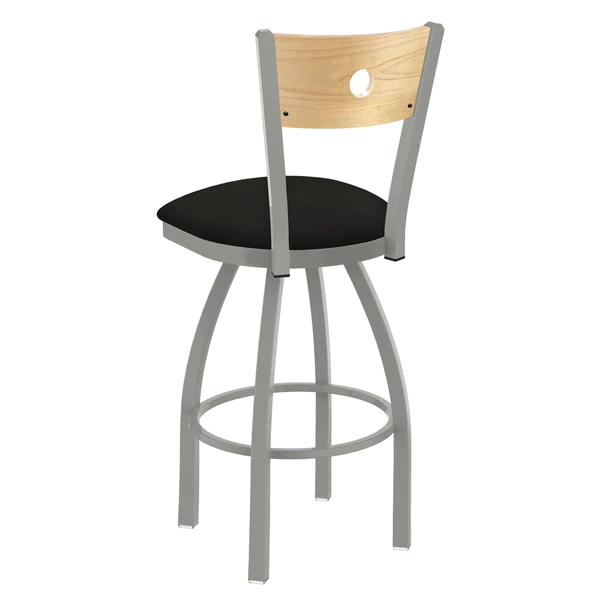 Customize your very own counter stool with the help of the Holland Bar Stool Co. This Anodized Nickel Voltaire swivel counter stool has a contemporary design featuring a stylish wood back available with a natural or medium finish. The frame is made from commercial quality 16 gauge, 1 1/4 inch tube steel with solid mig welded joints to guarantee strength and durability. The powder coated finish resists chips and scratches and ensures a long-lasting, rich appearance. The wood seats are 1 1/4 inch solid hardwood and are dished for amazing posterior comfort, making sitting for minutes or hours a pleasure. The cushion seats are of the highest quality as well, utilizing a breathable, commercial grade vinyl or fabric. At the heart of the cushion is 2 1/2 inches of highly-dense foam that provides maximum support and will not breakdown in a couple years. You won't find a higher quality stool on the market. If you are going to finish your bar or dining area – do it right, with a stool from the Holland Bar Stool Co.