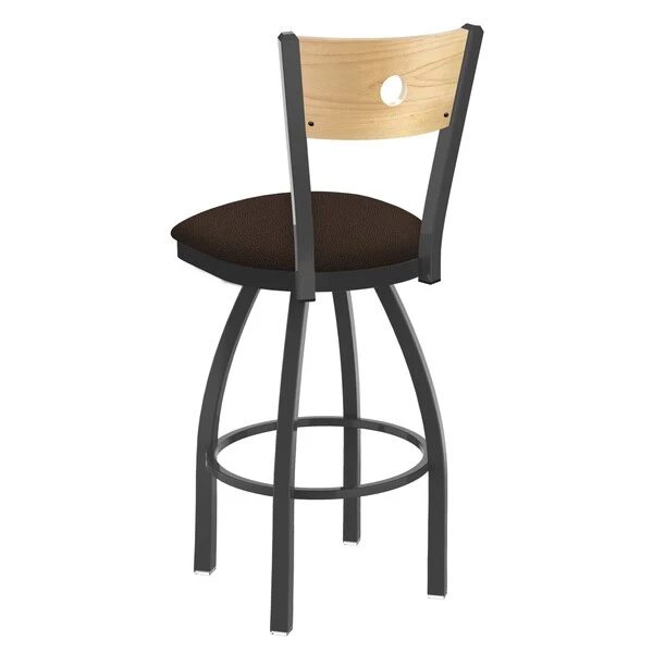 Customize your very own counter stool with the help of the Holland Bar Stool Co. This Pewter Voltaire swivel counter stool has a contemporary design featuring a stylish wood back available with a natural or medium finish. The frame is made from commercial quality 16 gauge, 1 1/4 inch tube steel with solid mig welded joints to guarantee strength and durability. The powder coated finish resists chips and scratches and ensures a long-lasting, rich appearance. The wood seats are 1 1/4 inch solid hardwood and are dished for amazing posterior comfort, making sitting for minutes or hours a pleasure. The cushion seats are of the highest quality as well, utilizing a breathable, commercial grade vinyl or fabric. At the heart of the cushion is 2 1/2 inches of highly-dense foam that provides maximum support and will not breakdown in a couple years. You won't find a higher quality stool on the market. If you are going to finish your bar or dining area – do it right, with a stool from the Holland Bar Stool Co.
