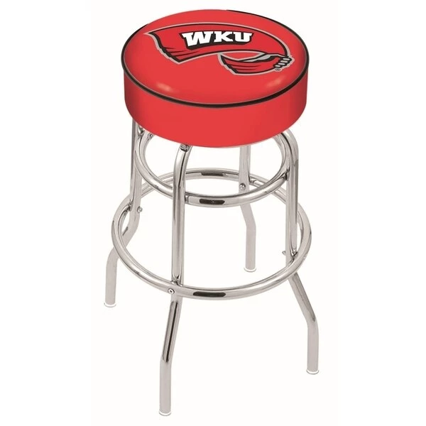 Made for the ultimate sports fan, you will be proud to show where your loyalty lies with this impressive Officially Licensed stool from the Holland Bar Stool Co. This L7C1 double ring swivel stool has a style that brings you back in time. A state of the art print process is used in applying specially formulated UV vinyl ink in numerous stages to produce a sharp, crisp, clear image to ensure a perfect reproduction of the logo. You won't find a higher quality logo stool on the market. The frame is made from commercial grade steel that is strong, durable, and triple chrome-plated to guarantee a long-lasting, rich finish capable of withstanding the abuse of your rowdiest of friends for years to come. The cushion seats are of the highest quality as well, utilizing a breathable, commercial grade vinyl. At the heart of the cushion is highly-dense foam that provides maximum support and will not breakdown in a couple years. If you're going to finish your bar, game room, or man cave do it right- with a logo stool made by the Holland Bar Stool Co.