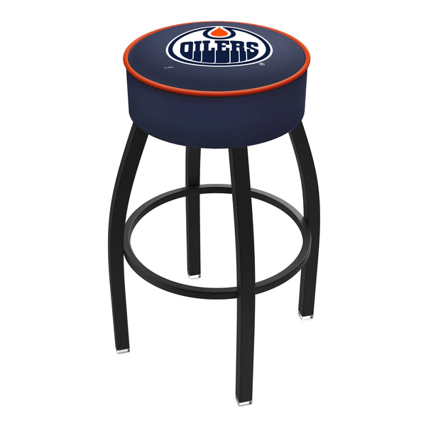 Made for the ultimate sports fan, you will be proud to show where your loyalty lies with this impressive Officially Licensed stool from the Holland Bar Stool Co. This contemporary L8B1 stool features a single-ring black wrinkle base with a 5" scooped cushion that conceals the swivel for an exceptionally clean look. A state of the art print process is used in applying specially formulated UV vinyl ink in numerous stages to produce a sharp, crisp, clear image to ensure a perfect reproduction of the logo. You won't find a higher quality logo stool on the market. The frame is made from commercial quality 16 gauge, 1 1/4 inch tube steel with solid mig welded joints to guarantee strength and durability. The powder coated finish resists chips and scratches and ensures a long-lasting, rich appearance. The cushion seats are of the highest quality as well, utilizing a breathable, commercial grade vinyl. At the heart of the cushion is highly-dense foam that provides maximum support and will not breakdown in a couple years. If you're going to finish your bar, game room, or man cave do it right- with a logo stool made by the Holland Bar Stool Co.