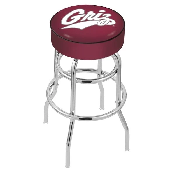 Made for the ultimate sports fan, you will be proud to show where your loyalty lies with this impressive Officially Licensed stool from the Holland Bar Stool Co. This L7C1 double ring swivel stool has a style that brings you back in time. A state of the art print process is used in applying specially formulated UV vinyl ink in numerous stages to produce a sharp, crisp, clear image to ensure a perfect reproduction of the logo. You won't find a higher quality logo stool on the market. The frame is made from commercial grade steel that is strong, durable, and triple chrome-plated to guarantee a long-lasting, rich finish capable of withstanding the abuse of your rowdiest of friends for years to come. The cushion seats are of the highest quality as well, utilizing a breathable, commercial grade vinyl. At the heart of the cushion is highly-dense foam that provides maximum support and will not breakdown in a couple years. If you're going to finish your bar, game room, or man cave do it right- with a logo stool made by the Holland Bar Stool Co.