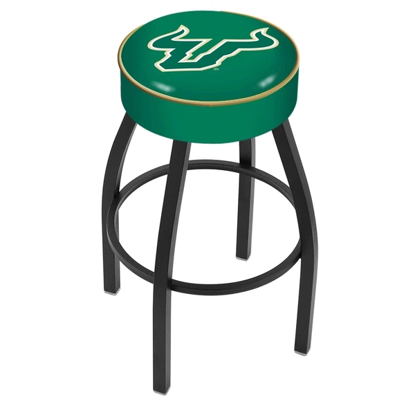 Made for the ultimate sports fan, you will be proud to show where your loyalty lies with this impressive Officially Licensed stool from the Holland Bar Stool Co. This contemporary L8B1 stool features a single-ring black wrinkle base with a 5" scooped cushion that conceals the swivel for an exceptionally clean look. A state of the art print process is used in applying specially formulated UV vinyl ink in numerous stages to produce a sharp, crisp, clear image to ensure a perfect reproduction of the logo. You won't find a higher quality logo stool on the market. The frame is made from commercial quality 16 gauge, 1 1/4 inch tube steel with solid mig welded joints to guarantee strength and durability. The powder coated finish resists chips and scratches and ensures a long-lasting, rich appearance. The cushion seats are of the highest quality as well, utilizing a breathable, commercial grade vinyl. At the heart of the cushion is highly-dense foam that provides maximum support and will not breakdown in a couple years. If you're going to finish your bar, game room, or man cave do it right- with a logo stool made by the Holland Bar Stool Co.