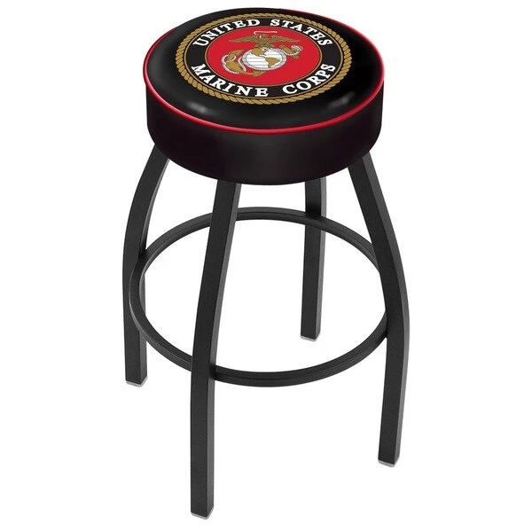 Show your support for our troops (past and present) with this impressive Officially Licensed stool from the Holland Bar Stool Co. This contemporary L8B1 stool features a single-ring black wrinkle base with a 5" scooped cushion that conceals the swivel for an exceptionally clean look. A state of the art print process is used in applying specially formulated UV vinyl ink in numerous stages to produce a sharp, crisp, clear image to ensure a perfect reproduction of the logo. You won't find a higher quality logo stool on the market. The frame is made from commercial quality 16 gauge, 1 1/4 inch tube steel with solid mig welded joints to guarantee strength and durability. The powder coated finish resists chips and scratches and ensures a long-lasting, rich appearance. The cushion seats are of the highest quality as well, utilizing a breathable, commercial grade vinyl. At the heart of the cushion is highly-dense foam that provides maximum support and will not breakdown in a couple years. If you're going to finish your bar, game room, or man cave do it right- with a logo stool made by the Holland Bar Stool Co.
