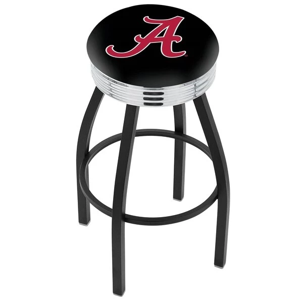 Made for the ultimate sports fan, you will be proud to show where your loyalty lies with this impressive Officially Licensed stool from the Holland Bar Stool Co. This classic L8B3C swivel stool features a single-ring black wrinkle base with a 2 1/2" thick cushion sitting on top of a 2.75" chrome ribbed ring that conceals the swivel for an exceptionally clean look. A state of the art print process is used in applying specially formulated UV vinyl ink in numerous stages to produce a sharp, crisp, clear image to ensure a perfect reproduction of the logo. You won't find a higher quality logo stool on the market. The frame is made from commercial quality 16 gauge, 1 1/4 inch tube steel with solid mig welded joints to guarantee strength and durability. The powder coated finish resists chips and scratches and ensures a long-lasting, rich appearance. The cushion seats are of the highest quality as well, utilizing a breathable, commercial grade vinyl. At the heart of the cushion is highly-dense foam that provides maximum support and will not breakdown in a couple years. If you're going to finish your bar, game room, or man cave do it right- with a logo stool made by the Holland Bar Stool Co.